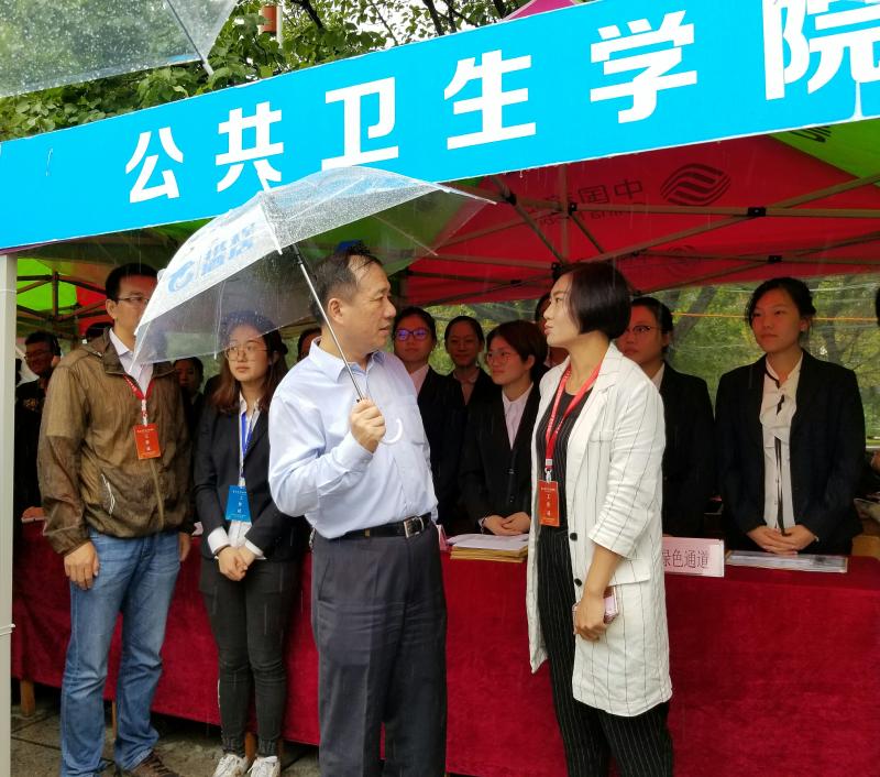 下午四时,绵绵细雨不断,党委书记杨振斌冒雨来到迎新工作现场,向黑料不打烊