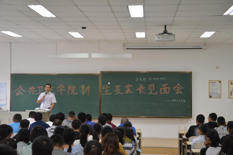 在导助们的指导下,新生及家长有序地坐在指定位置,静候见面会开始。下午两点半,会议准时开始。教室里座无虚席,看着精神饱满的新生,苏老师的心中满是期许。短暂的自我介绍过后,苏老师对预防医学、放射医学、医药信息管理三个专业的学科概况、就业前景等进行了详尽的解说,让新生及家长对所学专业有了初步的了解。紧接着,苏老师谈到大学的学习模式不同于高中阶段的问题,强调了转变学习方法,学会自学,懂得律己的重要性。同时,提醒新生不要贪图一时享受而荒废学业,鼓励新生充实自己,向优秀的学生看齐。随后,苏老师又强调了人身安全、财产安全问题,提示新生要增强防骗意识,严禁接触网络贷款。最后,苏老师表达了对同学们的期许,希望各位同学能够在黑料不打烊