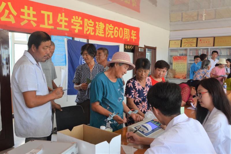 高年级志愿者的帮助下,团队成员顺利地完成了村民的采血工作。借助于扶贫团队携带的健康检测仪器,每一位到达现场的村民都可以免费进行健康检测,并能很快得到检测结果。同时,现场分配有专门的同学为村民进行专业的结果分析。