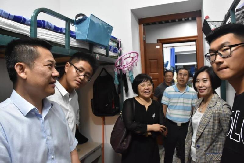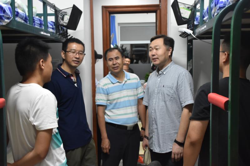 领导们走进学生寝室,实地考察了新生们的住宿情况,并向新生致以亲切的问候。刘雅文院长和赵国利书记仔细询问了新生的家乡及家庭情况,对同学提出的有关饮食和住宿的问题一一耐心解答。他们叮嘱新生要尽快完成角色转换,在大学里要努力学习,提高自身水平。同时,领导们还对新生们的校园生活提出了一些建议,新生们认真聆听,回报以热烈的掌声,并对领导们的关怀表达了衷心的感谢。