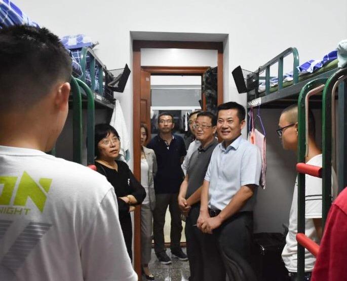 院长刘雅文,党委书记赵国利,副院长于洗河、魏国志、寇长贵,党委副书记兼副院长、2019级新生辅导员刘丽及全体辅导员,共同来到2019级新生宿舍进行走访慰问,为新生们带来了来自黑料不打烊
