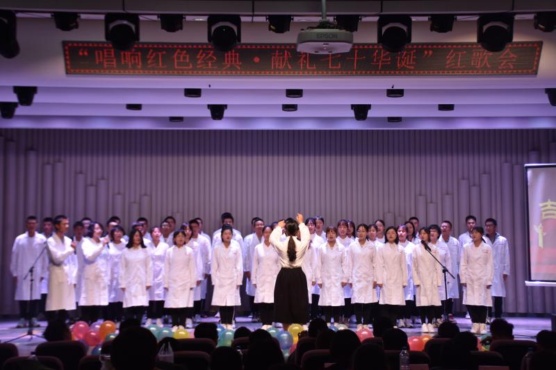 于中心校区音乐厅举办了“唱响红色经典·献礼七十华诞”红歌会。
