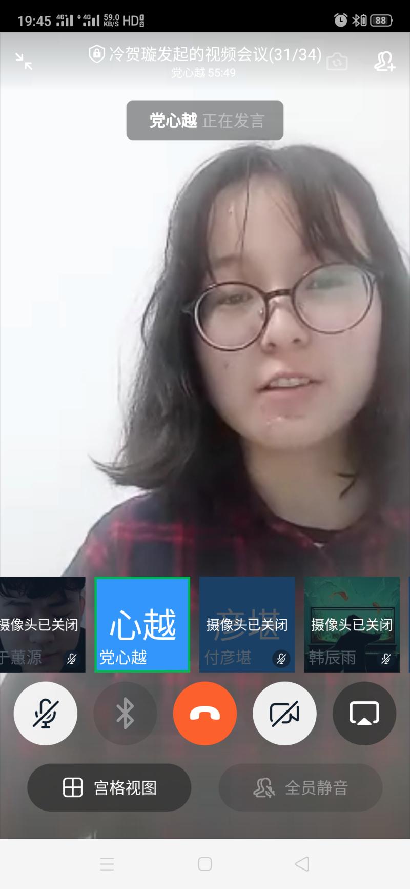 2020年第一批本科生发展对象学习交流座谈会采取线上会议形式,于5月8日晚七点在钉钉软件上准时开展。与会学生发展对象29人,会议由2017级辅导员冷贺璇主持。