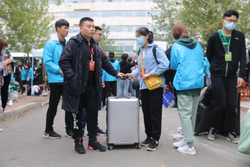 组织团学组织成员和志愿者帮助新生搬运行李。迎新初始,所有迎新工作人员全部早早到场,准备迎接来自五湖四海的莘莘学子。