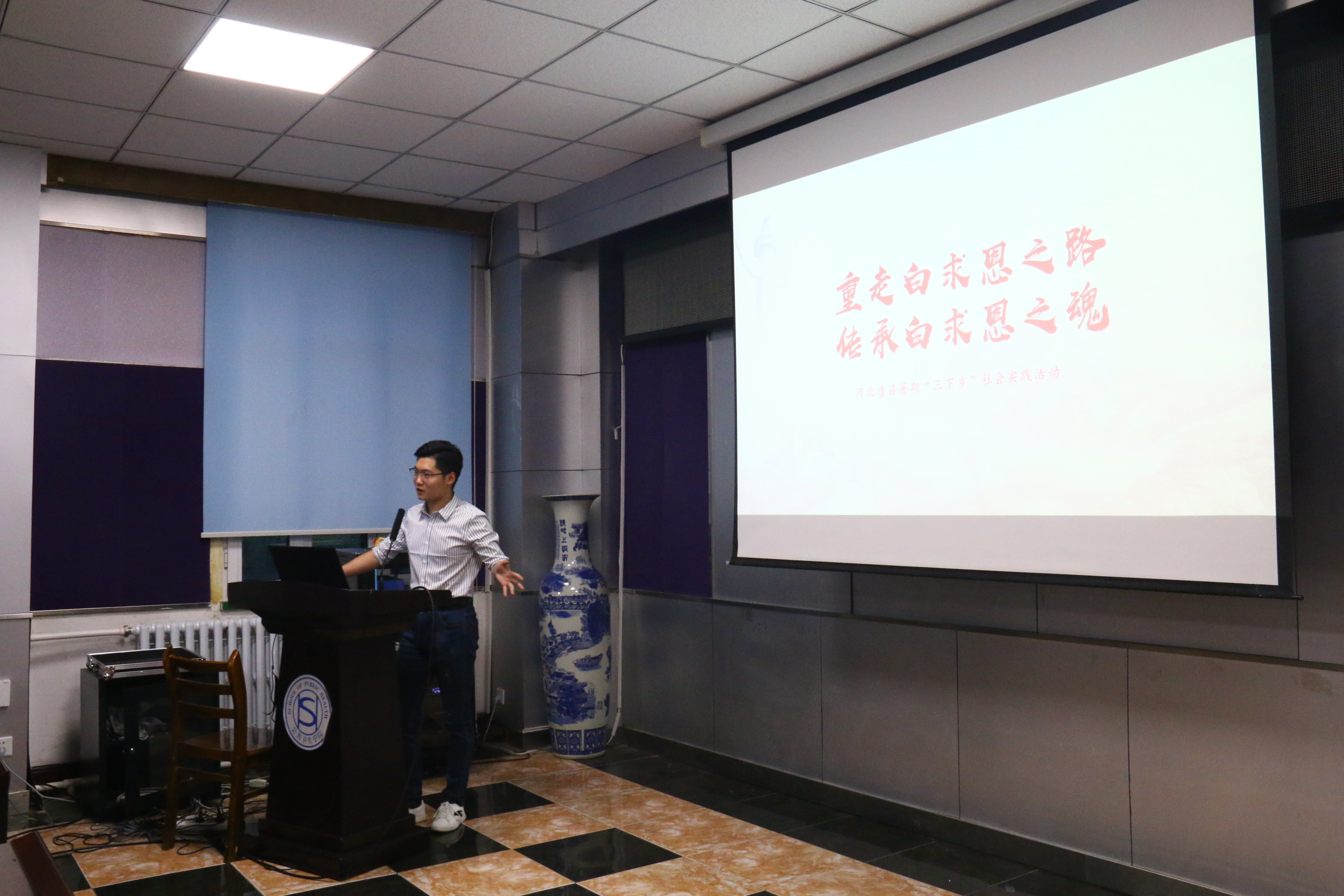 办公楼三楼报告厅举办了社会实践分享会。本次分享会邀请了2016级预防三班的刘家硕同学、2016级放射二班的何双双同学、2017级预防二班的卞骏业同学、2018级预防二班的刘畅同学、2018级放射一班的吕博文同学为大家讲述往年社会实践的经历。