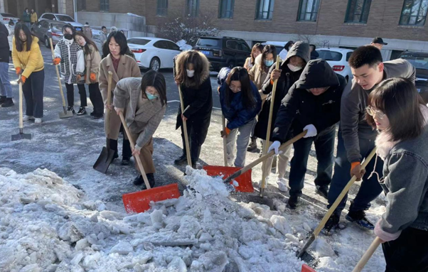 组织在校教师与研究生清扫院内积雪,清雪活动得到了全体师生的积极响应,师生有序分工,头顶寒风,相互配合,共同克服积雪厚、天气冷等困难,以饱满的热情和充足的干劲铲冰清雪,活动现场大家享受着劳动中的愉快欢欣,脸上都洋溢着灿烂的笑容。师生们充分发挥团队精神,齐心合力、团结合作,经过一个多小时的共同奋战,院内积雪基本清理干净。