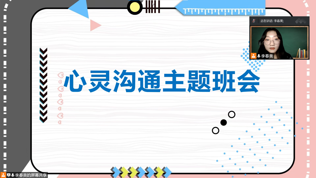 本次“心灵沟通”主题班会的成功开展,既为同学们缓解了疫情期间的心理压力、促进了同学们之间的沟通交流,增强团体凝聚力,也让同学们提升了心理健康知识,提高了同学们理解分析、化解矛盾、自我减压能力。相信同学们都能够以积极乐观的心态面对大学生活,收获一段美好充实的人生经历。